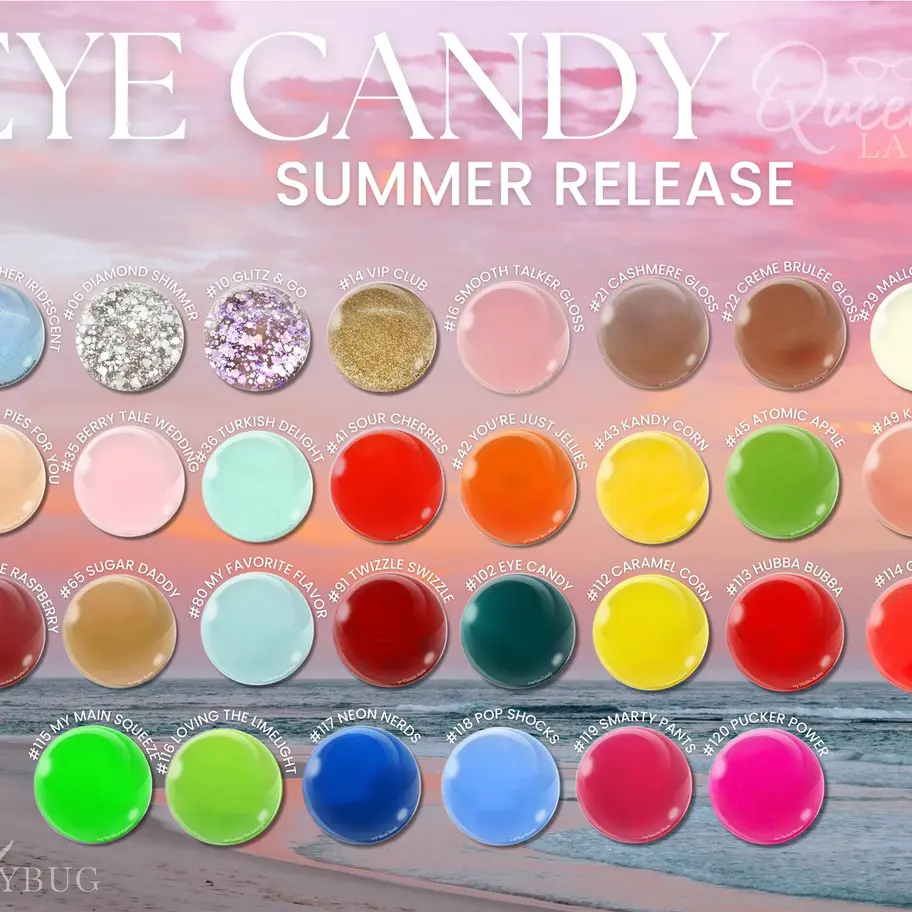 Our Eye-Candy Collection is creamy, highly pigmented, and one-coat coverage. Each bottle of solid-colored gel is in a solid-colored bottle, which is an almost exact match to the color inside.